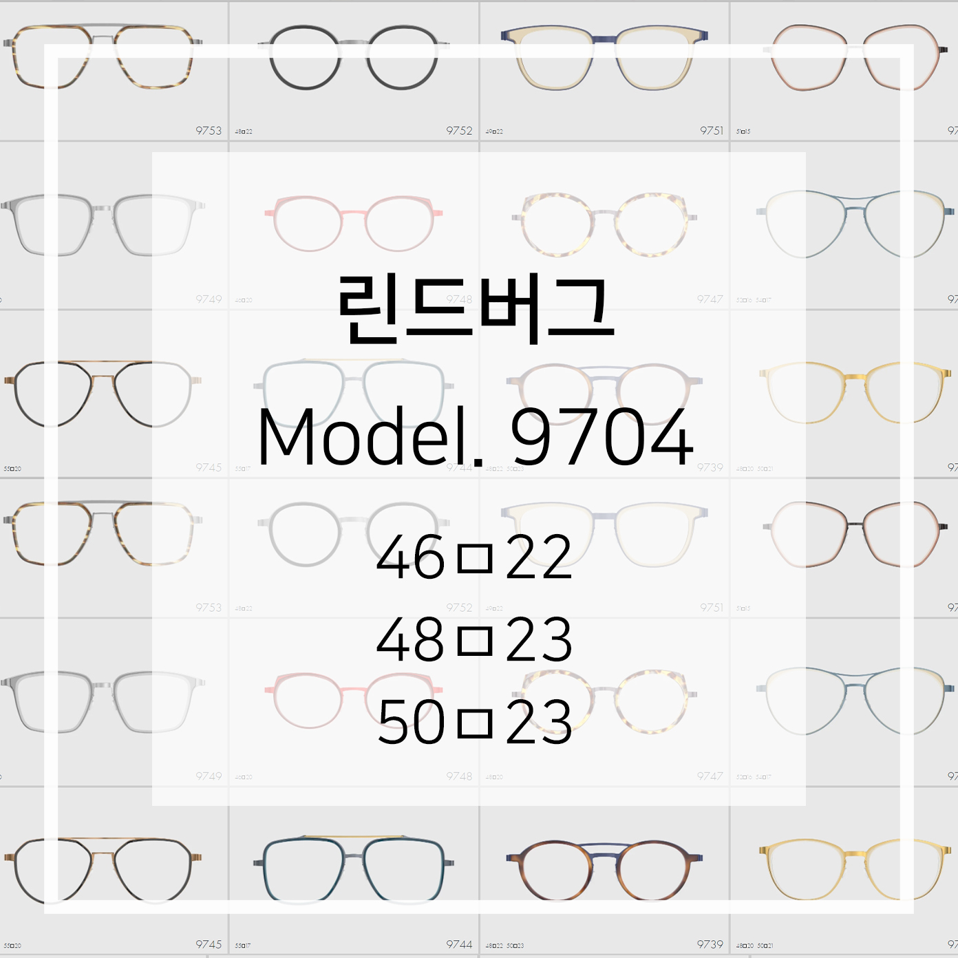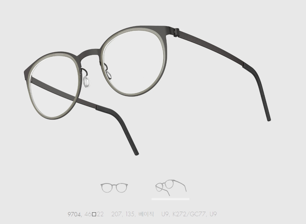 티타늄 플레이트로 만들어지는 아주 얇지만 와이어시리즈 보다는 넓은 면적으로 트렌디하고 개성적인 느낌을 연출 시킬 수 있는 시리즈 입니다. 그중 9700번대 시리즈는 안쪽에 들어가는 아세테이트 이너림으로 시각적느낌을 더 강조한 시리즈 입니다.