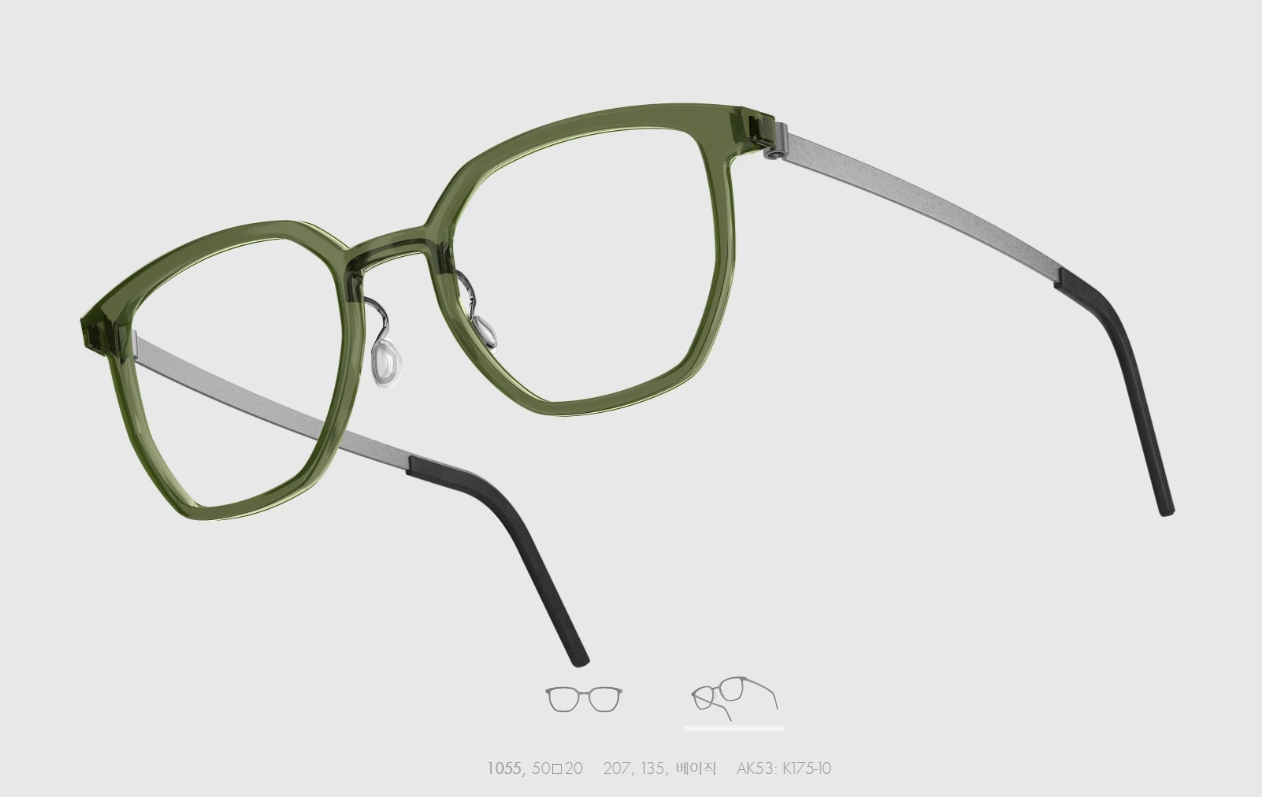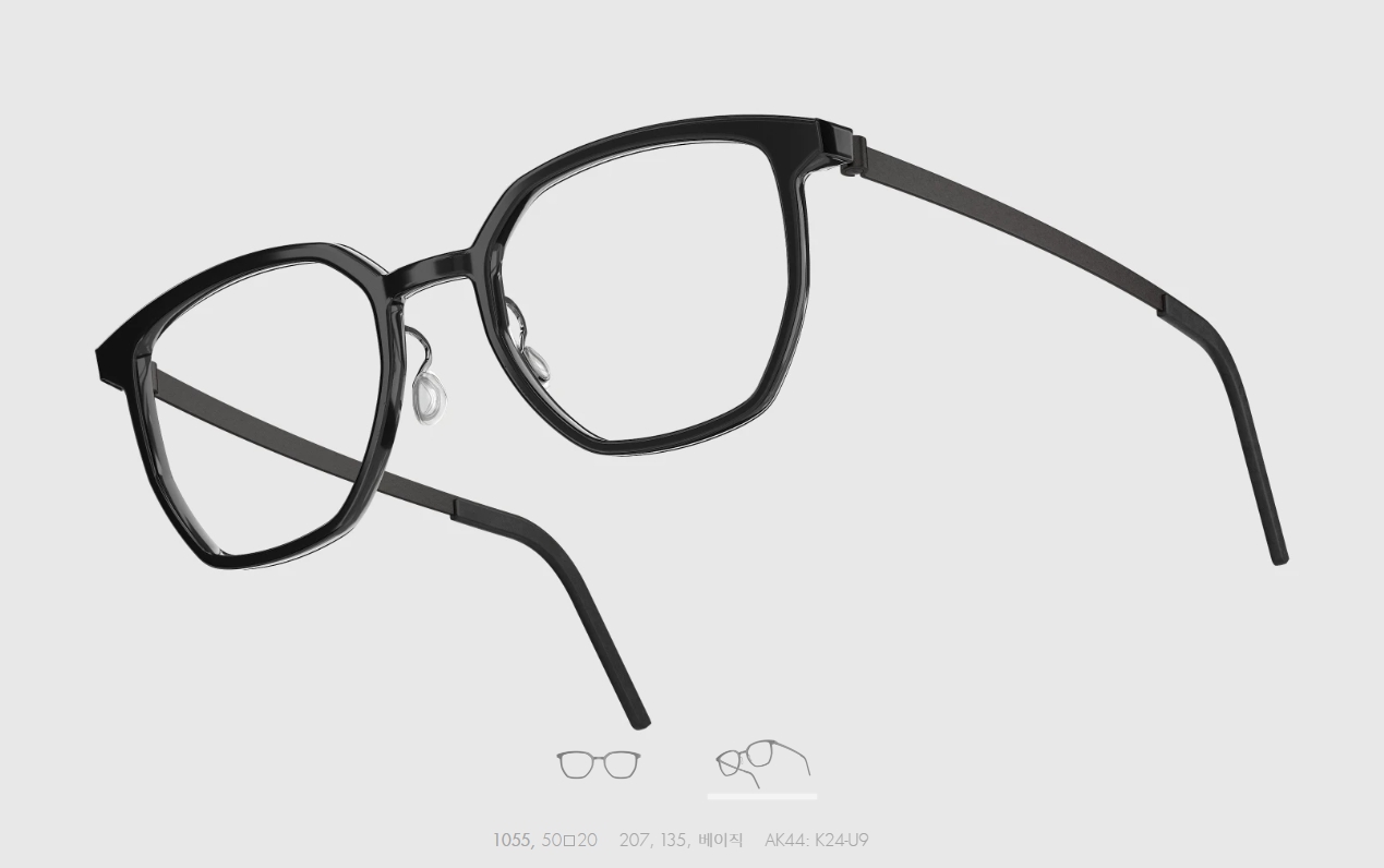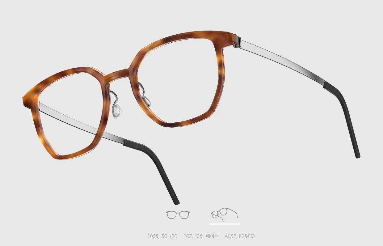 일반적인 일체형 뿔테와는 다르게 티타늄암이 채택되어 편안한 피팅이 가능하며, 템플 또한 작은 홈을 내어 안경 경사각 조절을 가능하게 만들었습니다.