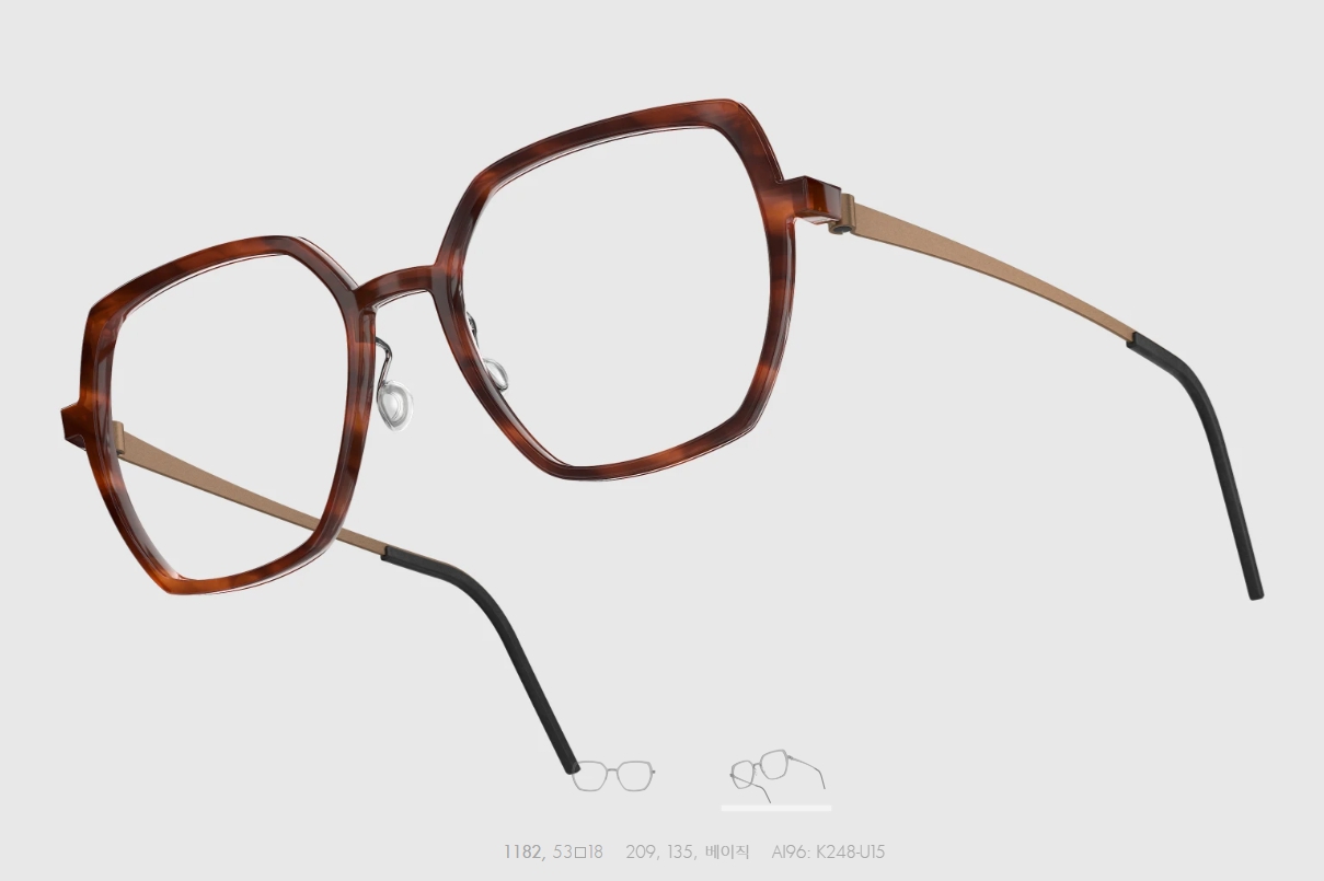 투박한 느낌의 통 뿔테 스타일 보다는 깔끔한 티타늄 템플을 통해 좀 더 모던하고 가벼운 아세테이트 소재의 안경이 디자인되었습니다.