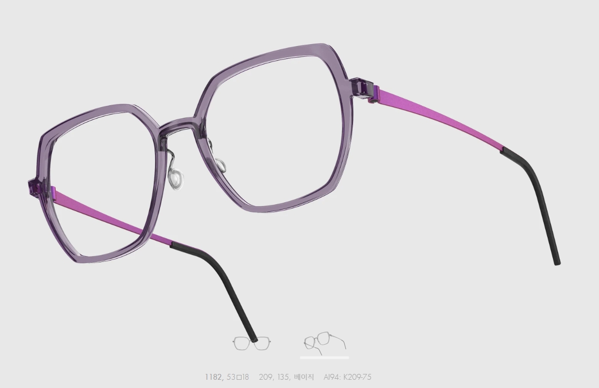 일반적인 일체형 뿔테와는 다르게 티타늄암이 채택되어 편안한 피팅이 가능하며, 템플 또한 작은 홈을 내어 안경 경사각 조절을 가능하게 만들었습니다.