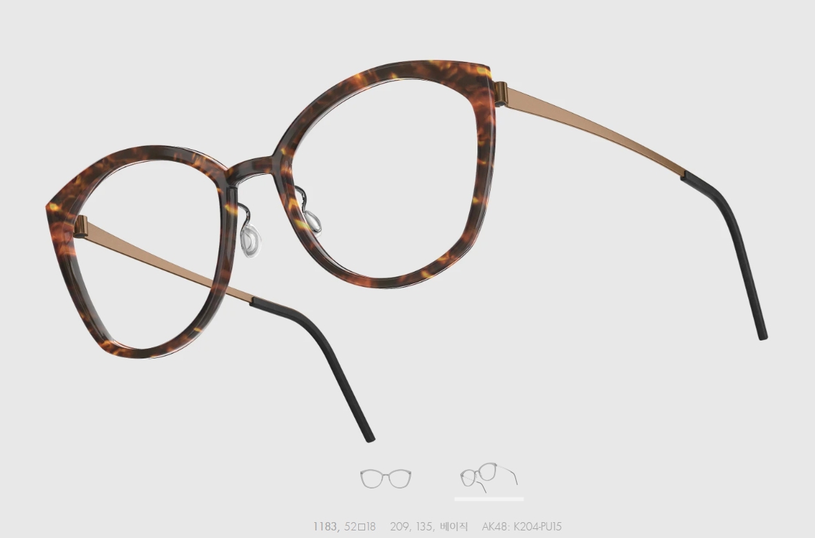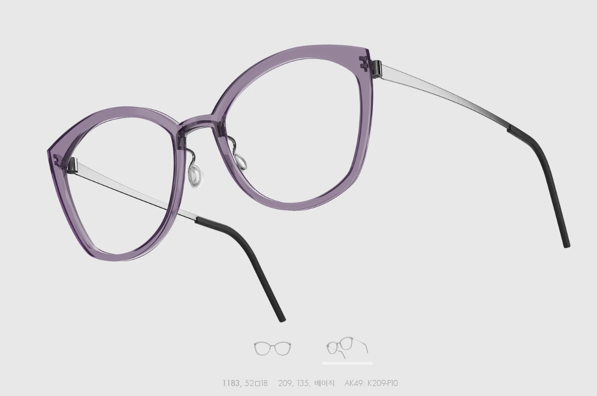 투박한 느낌의 통 뿔테 스타일 보다는 깔끔한 티타늄 템플을 통해 좀 더 모던하고 가벼운 아세테이트 소재의 안경이 디자인되었습니다.