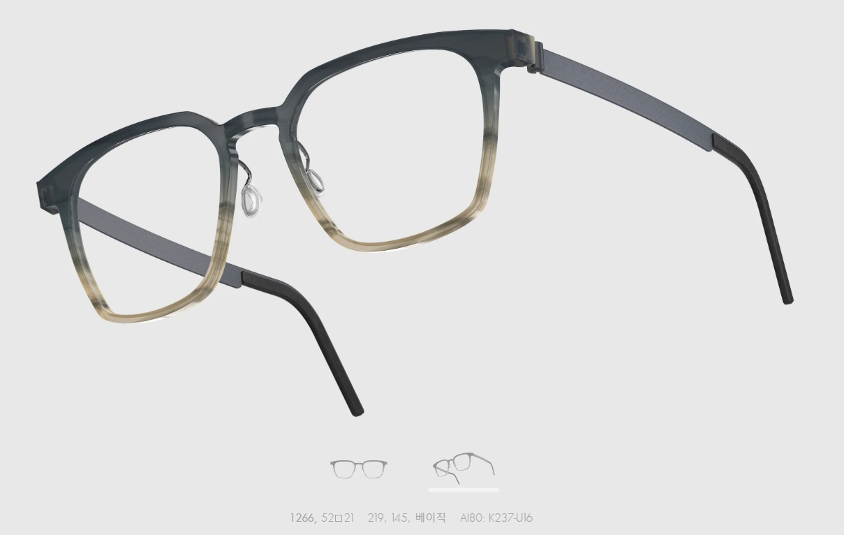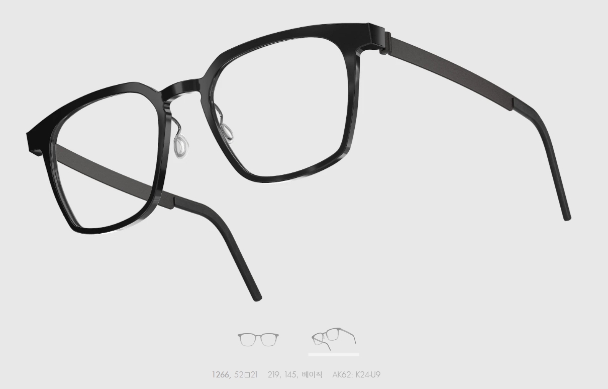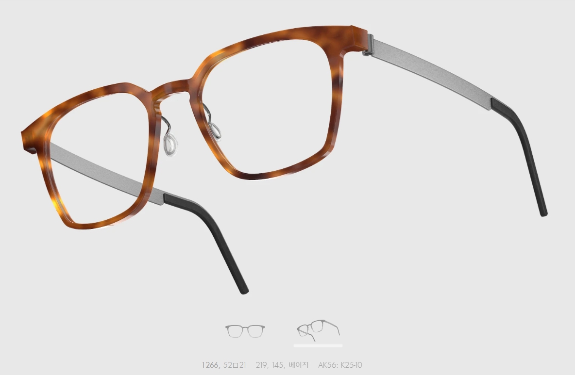 일반적인 일체형 뿔테와는 다르게 티타늄암이 채택되어 편안한 피팅이 가능하며, 템플 또한 작은 홈을 내어 안경 경사각 조절을 가능하게 만들었습니다.