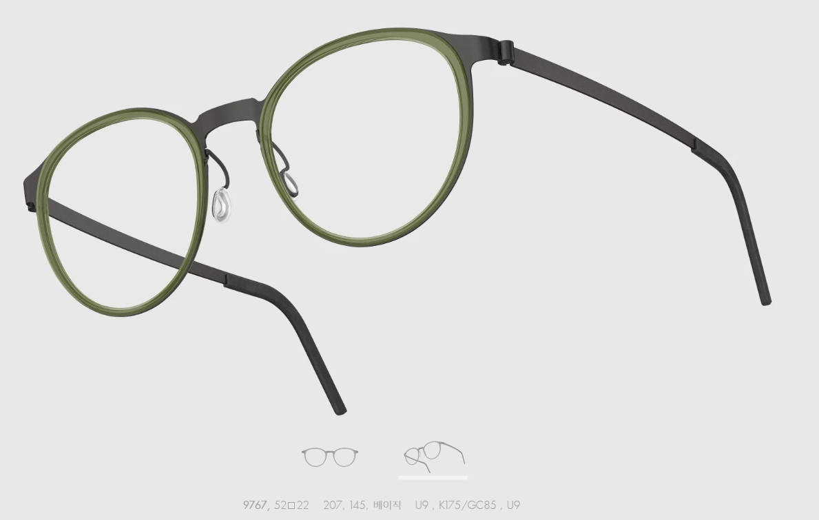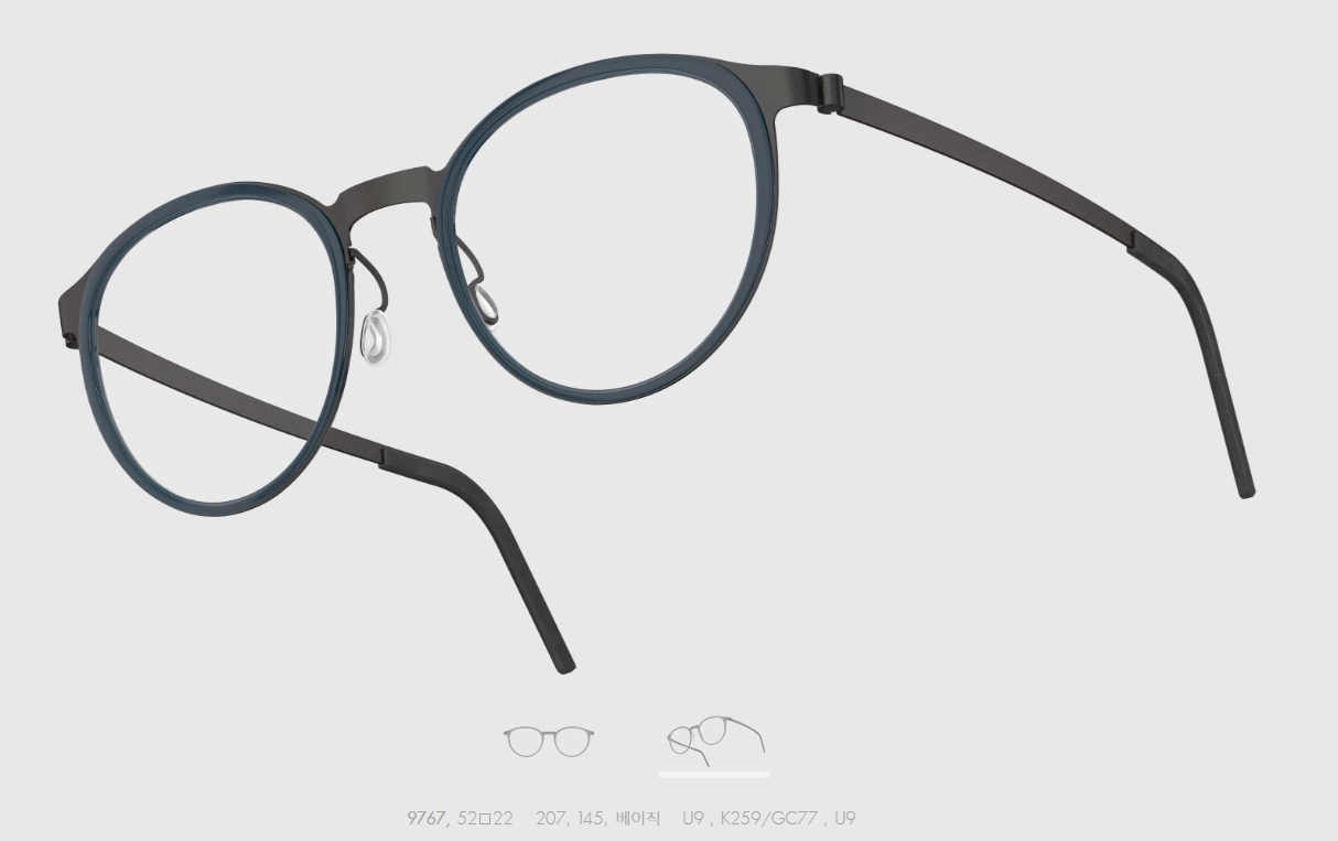 티타늄 플레이트로 만들어지는 아주 얇지만 와이어시리즈 보다는 넓은 면적으로 트렌디하고 개성적인 느낌을 연출 시킬 수 있는 시리즈 입니다. 그중 9700번대 시리즈는 안쪽에 들어가는 아세테이트 이너림으로 시각적느낌을 더 강조한 시리즈 입니다.