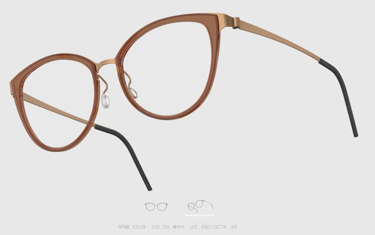 티타늄 플레이트로 만들어지는 아주 얇지만 와이어시리즈 보다는 넓은 면적으로 트렌디하고 개성적인 느낌을 연출 시킬 수 있는 시리즈 입니다. 그중 9700번대 시리즈는 안쪽에 들어가는 아세테이트 이너림으로 시각적느낌을 더 강조한 시리즈 입니다.