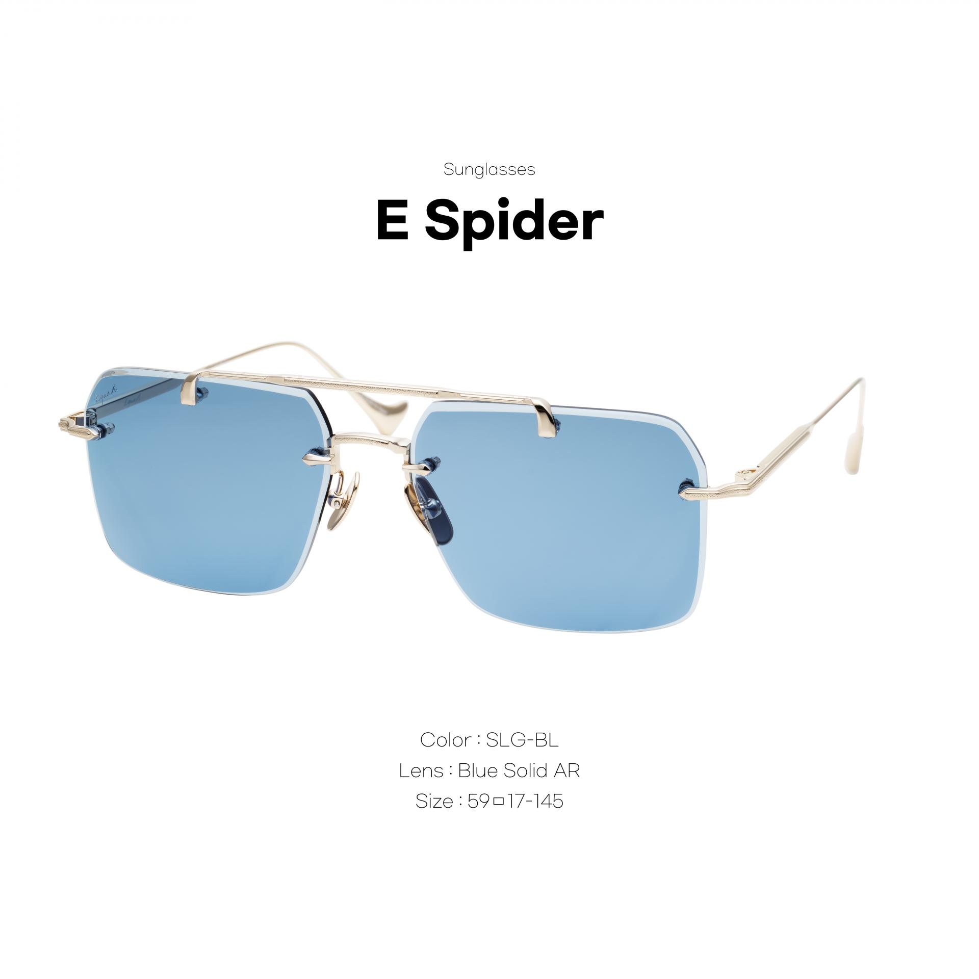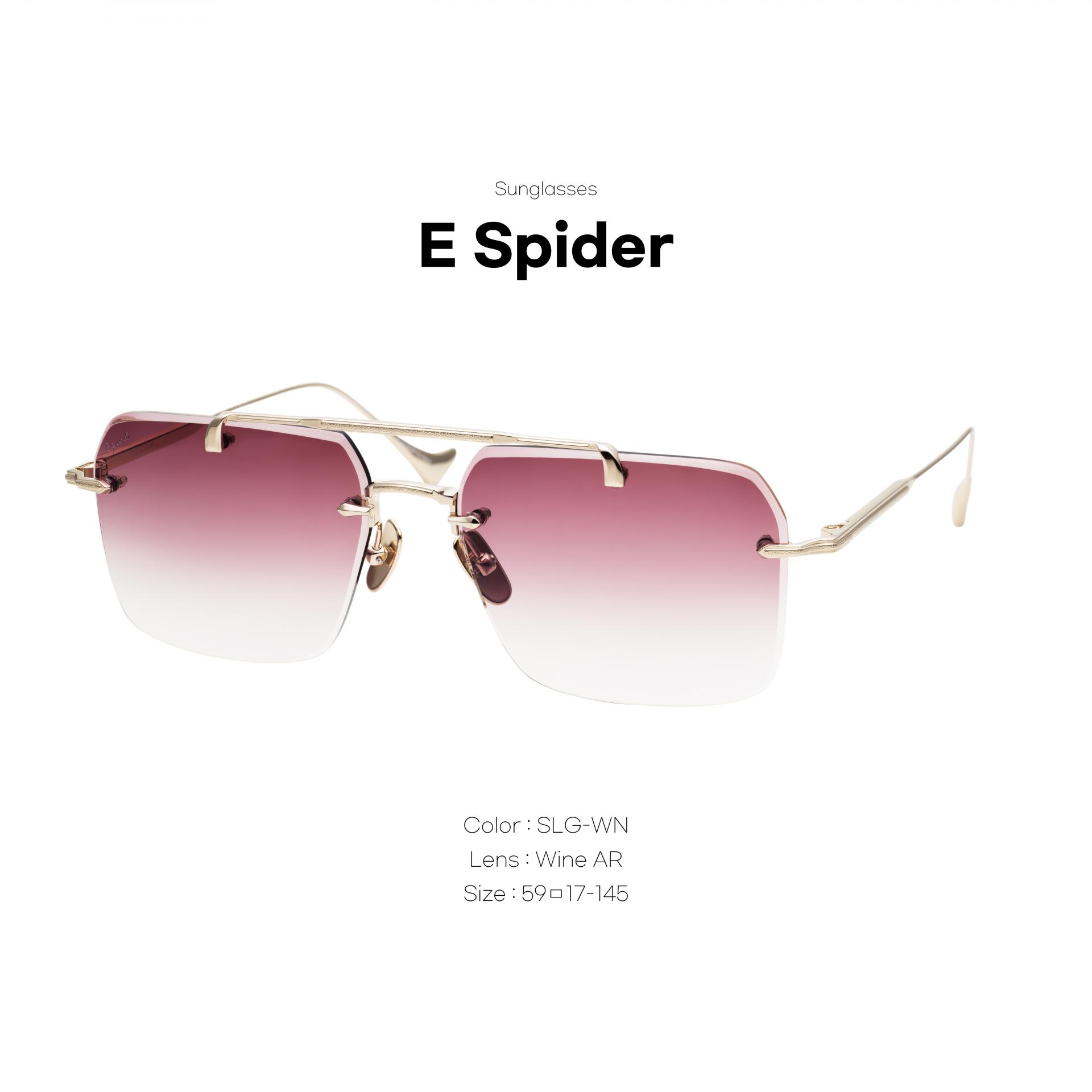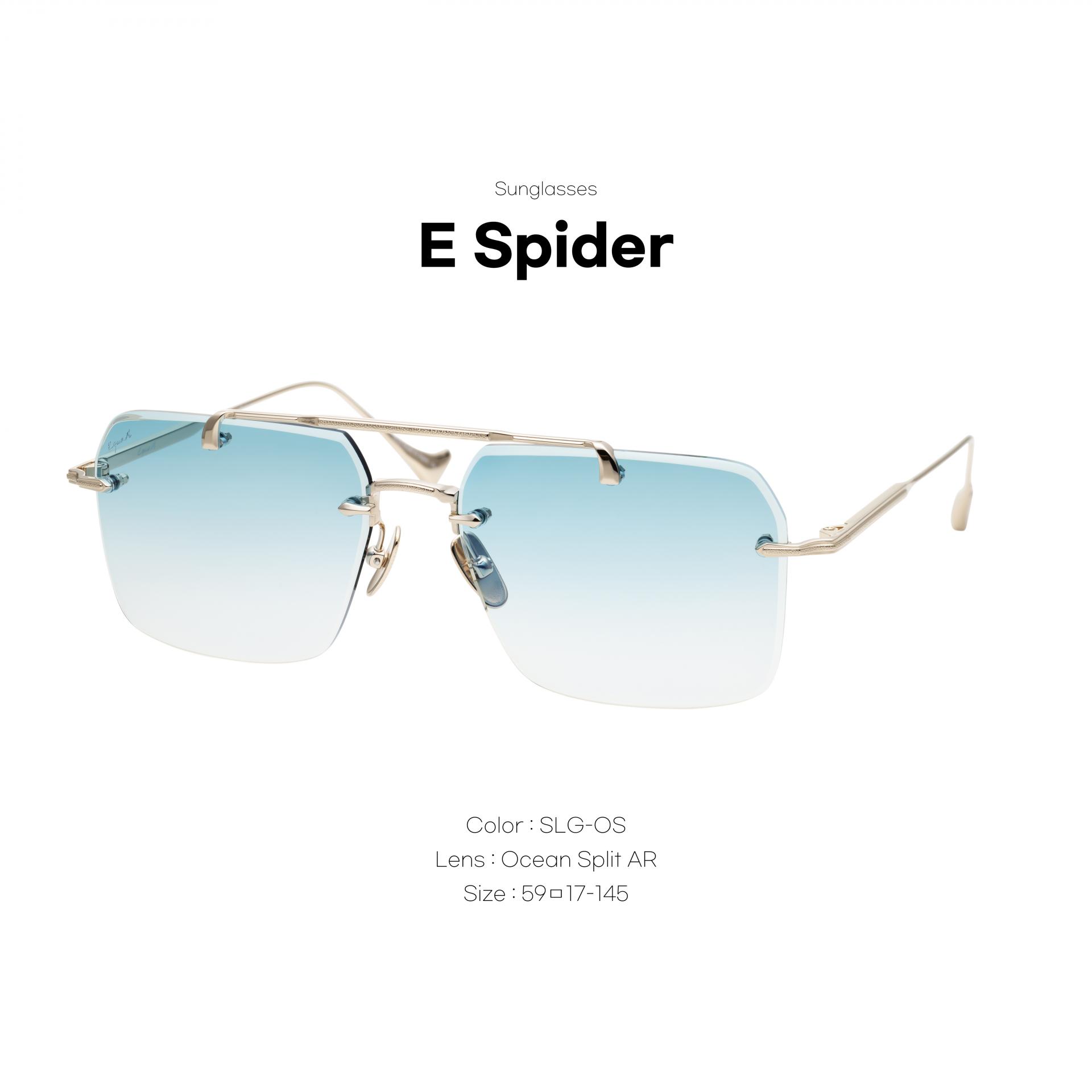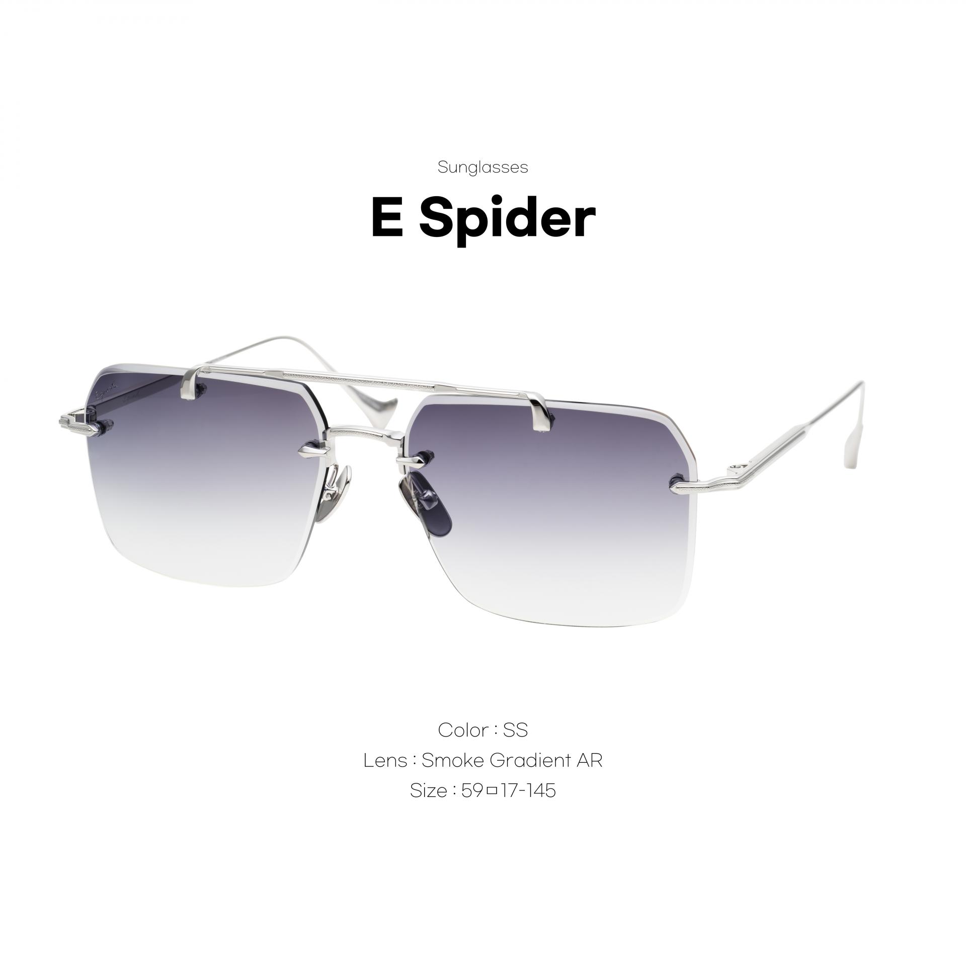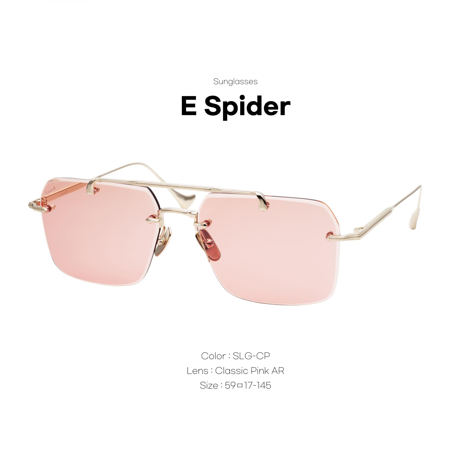 EQUE.M의 E Spider 모델은 테가 없는 착색 렌즈에 이중 브릿지를 장착한 무테 선글라스로 섬세한 티타늄 라인들로 대담한 룩을 연출하며, 브랜드의 아이코닉한 음각 웨이브 패턴을 특징으로 합니다. 이는 강렬한 생동감과 우아한 미니멀리즘의 세련된 대비를 보여줍니다.