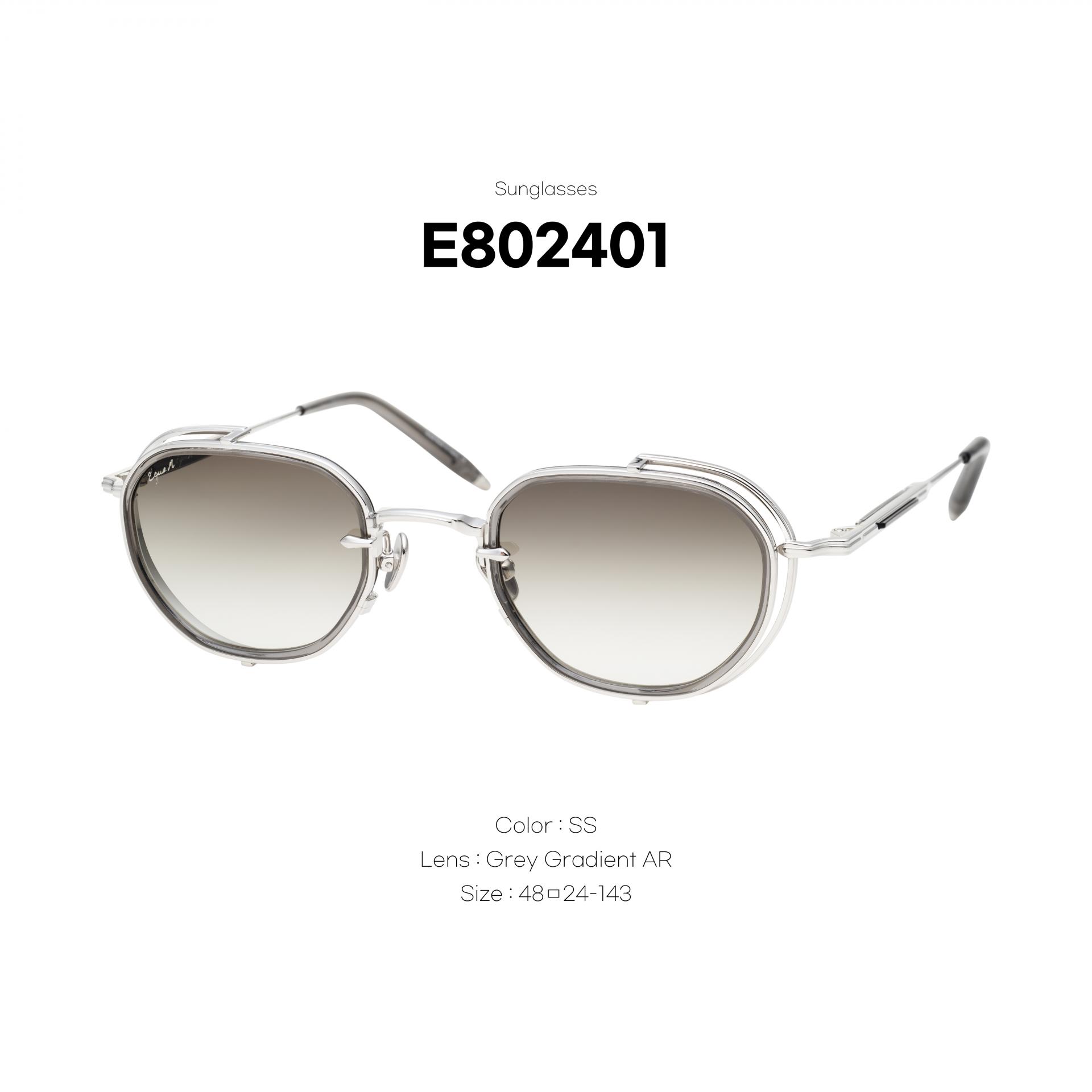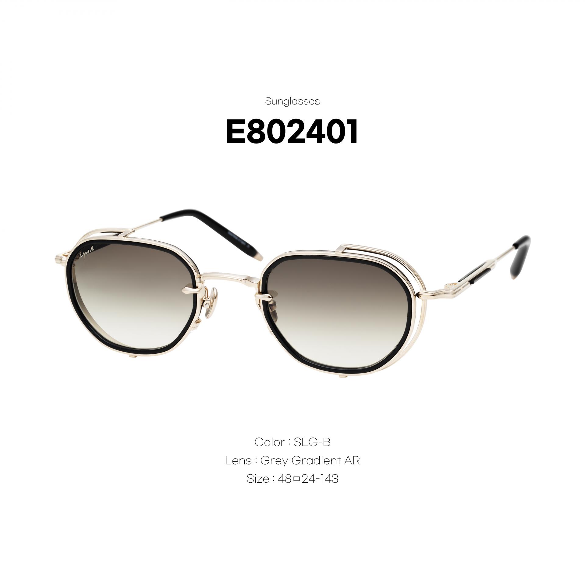 EQUE.M의 대담한 스타일의 E802401 모델은 떠 있는 프레임 전면 디자인으로 독특한 건축적 스타일을 연출합니다. 그라데이션 렌즈는 이너 림 안에 삽입되어 있으며, 반짝이는 메탈 하프림이 이를 둘러싸며 빈 측면 실드 효과를 만들어냅니다.